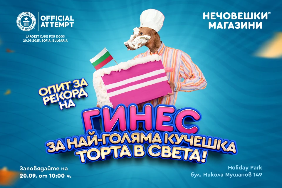 15.09.2025 Готви се Нечовешки Рекорд на Гинес – най-голямата кучешка торта в света! На 20 септември 2025 г. в "Нечовешки магазин" на бул. "Никола Мушанов" 149 (Holiday Park Красна поляна, София) от 10:00...