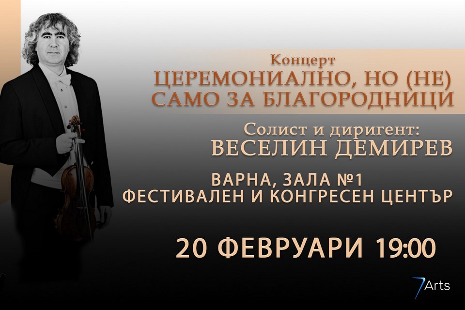 "ЦЕРЕМОНИАЛНО, НО (НЕ) САМО ЗА БЛАГОРОДНИЦИ" - така са озаглавени предстоящите два концерта на Симфониета-Враца, на които известният български цигулар Веселин Демирев, концертмайстор на Симфоничния оркестър в Олборг, Дания, ще бъде солист и диригент. Концертите са на 19 февруари във Враца и на 20 февруари в родния му град Варна.