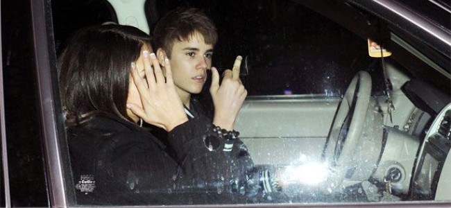 Тийн звездата, който вече не крие любовната си връзка с певицата и актриса Селена Гомес (Selena Gomez), като истинско лошо момче размаха и среден пръст на преследващите ги папараци.