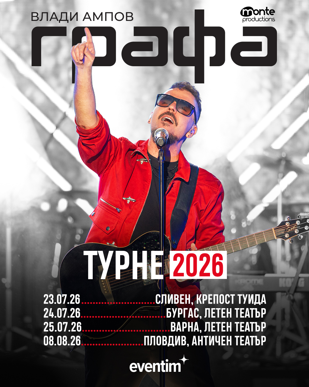 На сцената Графа ще бъде с музикантите си, които със своята енергия и майсторство допринасят за силното живо звучене на концертите.