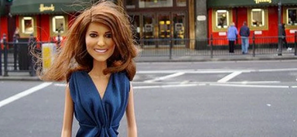 Куклата "Принцеса Катрин" вече е на пазара. Тя е облечена в прочутата синя рокля на Кейт Мидълтън и носи дизайнерски аксесоари досущ като годеницата на принца - шапка, обувки и чанта.