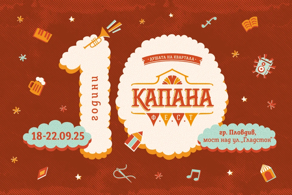 От 18 до 22 септември, Пловдив отново ще стане сърцето на градската култура - настъпва юбилейното издание на Капана Фест, а музикалната програма тази година е повече от специална. На сцената над ул."Гладстон" ще звучат знакови български имена, нови градски открития и празнични концерти.